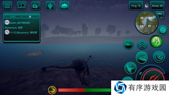 2、玩家在游戏中可以尽情捕猎,面对各种恐龙和比自己小的生物,可以狩猎保证自己的生存。