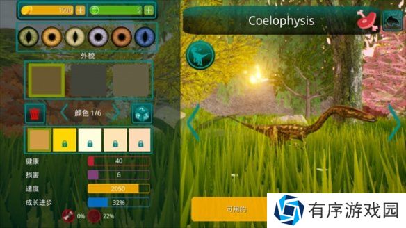 3、提供了自定义装扮系统,让玩家能够亲手捏造恐龙形象,左侧的编辑界面可以调整恐龙外貌特征和颜色。