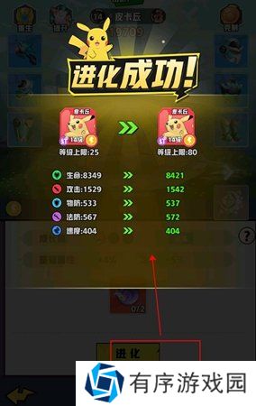 4、此外,当玩家拥有进化石时,还可对精灵进行进化操作,进化后的精灵将获得更强大的属性加成,成为战斗中的得力助手。