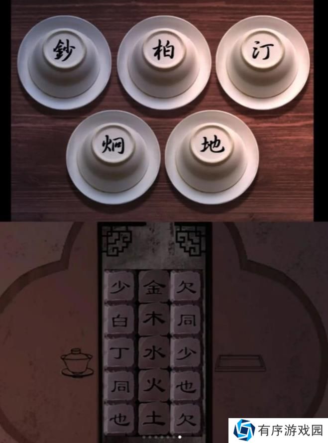 得到【托盘坎】,根据茶杯上信息和托盘信息解开挂画后面的机关