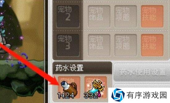 6、点击需要设置加血的药水然后拖到右侧宠物界面下方的背包里即可。