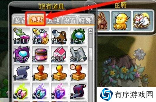 5、在背包界面中选择顶部菜单中的"消耗"选项。