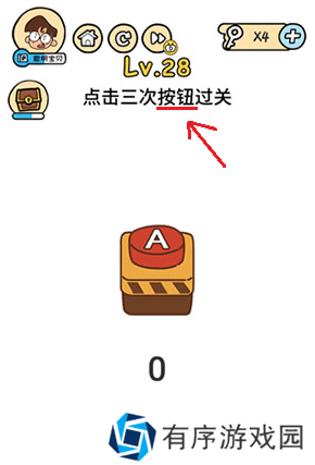 脑洞大大大第28关怎么过?第28关的题目是“点击三次按钮过关”,这一关也非常的简单,我们点击题目上的按钮即可,下面小编就为大家带来了脑洞大大大第28关攻略。