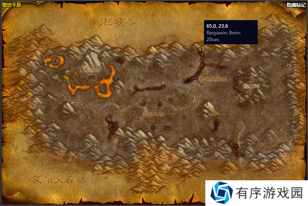 2、玩家可以前往燃烧平原,找到玛瑟迪斯·火芒(65.0,23.6)。