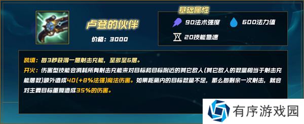 开火:伤害型技能会消耗所有射击充能来对目标和目标附近的其它敌人(其它敌人的数量相当于射击充能层数)额外造成40(+8%法强)魔法伤害。